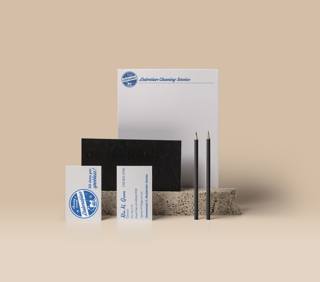 Dalmatian was looking for a logo that evoked their old-school work ethic. In addition to a full set of stationery, they were also interested in out-fitting their employees with screen-printed shirts for workers and embroidered shirts for management.