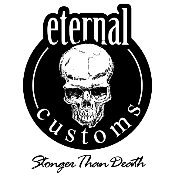 Logo for local classic car restoration aficionados. They requested a logo that was a bit edgy and dark… referencing classic heavy metal. The design calls attention to the skull, and the round dome appears to protrude towards the viewer. The design was requested to be two color, and taking the subject matter into account, black and white was dictated for the best contrast.